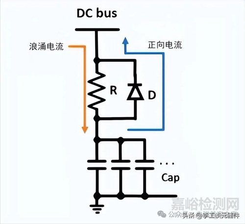 此時,只需在電容輸入串聯(lián)電阻和二極管即可,可以減輕浪涌電流。當直流母線通過電阻給電容充電時,可以限制浪涌電流,但是,當直流母線需要供電時,電容可以通過二極管將電能反饋給直流母線。