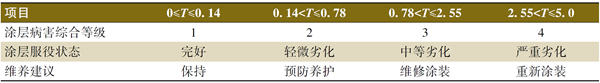 計(jì)算出涂層病害綜合評(píng)分后,根據(jù)表1的維養(yǎng)建議進(jìn)行維養(yǎng)。