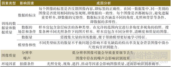 Table 2 Main factors affecting accuracy of image recognition