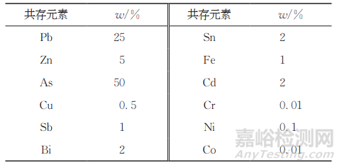 表2 高砷鉛煙灰中共存元素的最大質(zhì)量分數(shù)