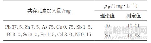 表4 共存元素對測定結果的影響