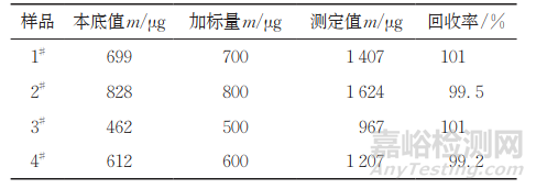 按照試驗方法對樣品1#~4#分別進行加標回收試驗,計算回收率,結果見表6。