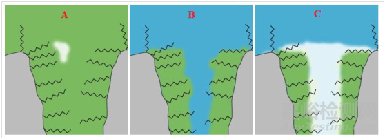 [圖 3 C18 鏈在孔內去濕現(xiàn)象發(fā)生前后]