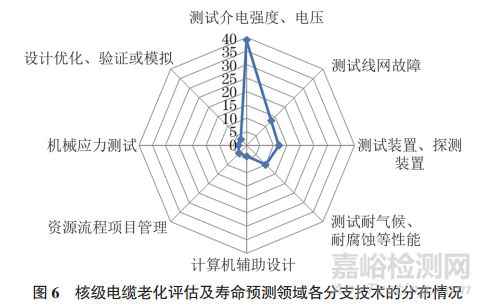 (3)通過物理、化學(xué)相關(guān)性能表征老化性能、進(jìn)行壽命預(yù)測是專利申請數(shù)量最高的技術(shù)領(lǐng)域,但計(jì)算機(jī)相關(guān)、人工智能技術(shù)已經(jīng)開始向核級電纜老化評估及壽命預(yù)測領(lǐng)域滲透。