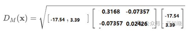 多變量置信區(qū)間的計(jì)算會(huì)用到馬氏距離,這個(gè)公式非常復(fù)雜,如果感謝興趣可以繼續(xù)看,如果看不懂也沒有關(guān)系,能會(huì)用軟件計(jì)算或者記住本文第二節(jié)的原理和結(jié)論即可。