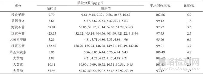 2.6 加標(biāo)回收與精密度試驗(yàn)
