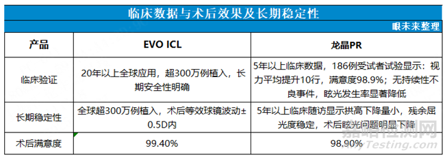 EVO ICL晶體的特殊材料設(shè)計(jì)以及20年的臨床應(yīng)用,為屈光不正的矯正提供了一條全新的技術(shù)路線,目前已經(jīng)升級(jí)至第5代產(chǎn)品,且通過(guò)臨床觀察以及術(shù)后隨訪取得了醫(yī)生和患者的雙重認(rèn)可。龍晶晶體打破了過(guò)去ICL晶體獨(dú)家壟斷的市場(chǎng),經(jīng)過(guò)5年的臨床觀察與隨訪,也取得了優(yōu)異的成績(jī),但與EVO晶體仍有較小的差距。