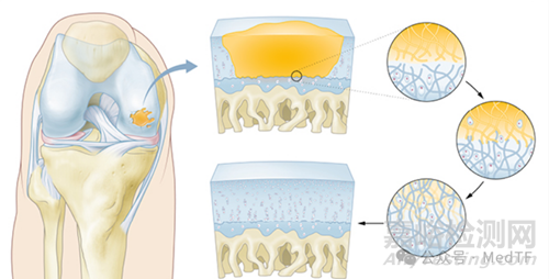 目前對于緩解膝關節(jié)炎疼痛方式很多,主要由保守治療和關節(jié)鏡微創(chuàng)治療。這兩種方法各有優(yōu)缺點,而且這兩種療法的長期臨床收益是有限的。例如保守治療常采用方式向關節(jié)腔注射皮質(zhì)類固醇、透明質(zhì)酸鈉等。盡管注射皮質(zhì)類固醇、透明質(zhì)酸鈉等 能起到消炎、緩解疼痛、潤滑、改善活動功能等作用。但是關節(jié)腔內(nèi)長期注射皮質(zhì)類固醇會導致軟骨代謝失衡及骨質(zhì)疏松; 關節(jié)腔內(nèi)注射透明質(zhì)酸能夠潤滑關節(jié),緩解疼痛等癥狀,但不能修復軟骨損傷和延緩KOA進展。