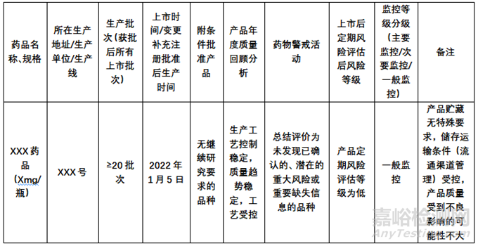 依據(jù)《XX年度上市后藥品風(fēng)險(xiǎn)評(píng)估分級(jí)表》,該品種為XX監(jiān)控級(jí)別,結(jié)合公司本年度藥品上市后風(fēng)險(xiǎn)管理計(jì)劃實(shí)施計(jì)劃,開(kāi)展上一期風(fēng)險(xiǎn)評(píng)價(jià)周期至今XX藥品商業(yè)化生產(chǎn)批次在注冊(cè)環(huán)節(jié)、生產(chǎn)環(huán)節(jié)、儲(chǔ)存運(yùn)輸環(huán)節(jié)、臨床時(shí)使用環(huán)節(jié)以及監(jiān)管和行業(yè)變化等方面的質(zhì)量風(fēng)險(xiǎn)管控。