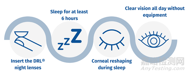 鏡片采用硬性透氣材料,既尊重眼睛的生理結(jié)構(gòu),又兼具矯正功能。在睡眠期間(至少6小時),鏡片能夠暫時重塑角膜的形狀,并促使其逐漸恢復(fù)至正常曲率。佩戴者在清晨摘下夜戴鏡片后,視力將自然恢復(fù)清晰,并可持續(xù)數(shù)小時。