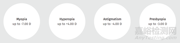 該產(chǎn)品適用于滿足說明書要求,并且近視度數(shù)在-1.00D~-4.00D之內(nèi),散光度數(shù)不超過1.50 D的配戴者近視的暫時矯正。