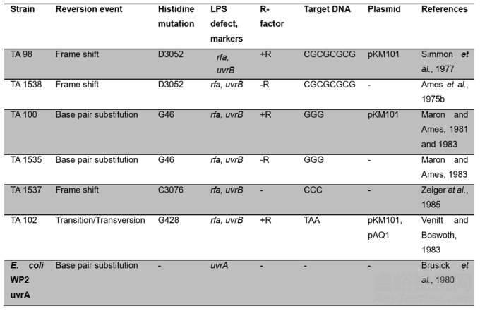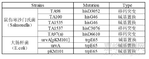 表1.Ames菌株類型表