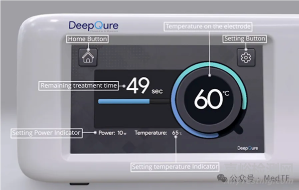 能夠顯示設(shè)置按鈕、電極溫度、剩余治療時(shí)間、設(shè)置溫度指示器