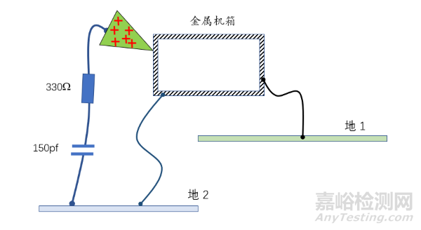 1.一種是進(jìn)行CS112試驗(yàn)所使用的靜電槍的地線所連接地方,也就是試驗(yàn)裝置中的參考地線面,如圖2中的“地2”所示;