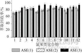 圖2 不同加速溶劑萃取條件下的樣品回收率