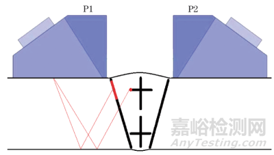 超聲衍射時差法(TOFD)超聲成像檢測技術(shù)基于焊縫內(nèi)部裂紋尖端的超聲衍射信號進(jìn)行測量,能夠?qū)崿F(xiàn)焊縫裂紋缺陷的精準(zhǔn)定量測量,但其近表面存在盲區(qū),對該區(qū)域檢測可靠性不夠,且由于使用的是縱波檢測,難以有效利用二次波而無法實現(xiàn)焊縫的百分百覆蓋檢測,存在漏檢風(fēng)險。