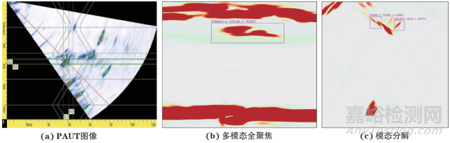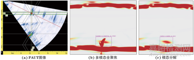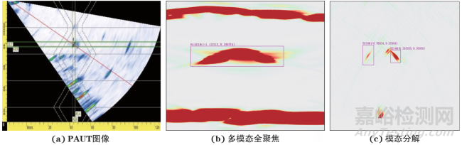 2.模態(tài)組合成像可有效重構(gòu)焊縫輪廓結(jié)構(gòu)以及內(nèi)部埋藏缺陷的真實形態(tài),有效地降低了缺陷定性難度。