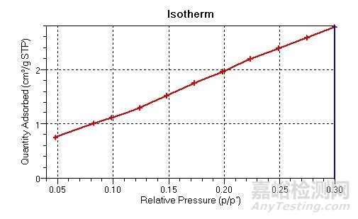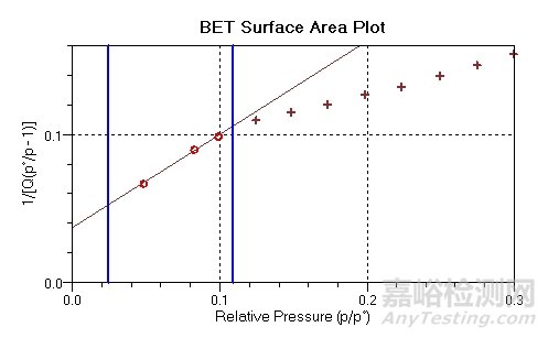 根據(jù)測試的等溫吸附線數(shù)據(jù),我們可以得到BET比表面積圖。并可在此圖中選擇3-5個連續(xù)點用于計算材料的比表面積。
