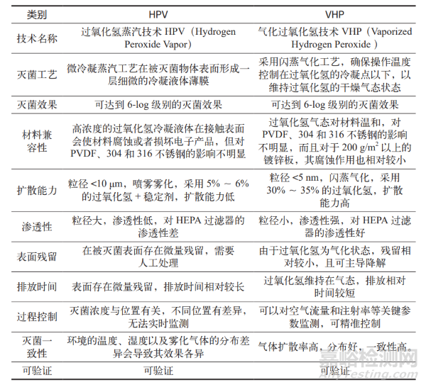 表1 HPV與VHP技術(shù)及效果對(duì)比表