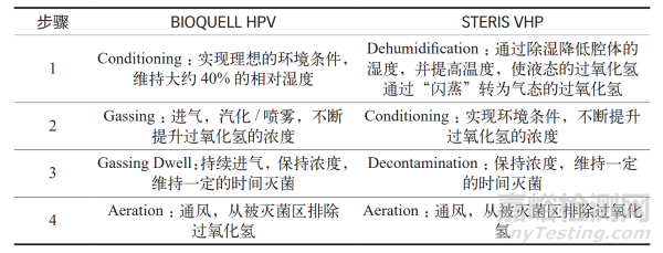 表2 BIOQUELL HPV和STERIS VHP的操作工藝對(duì)比