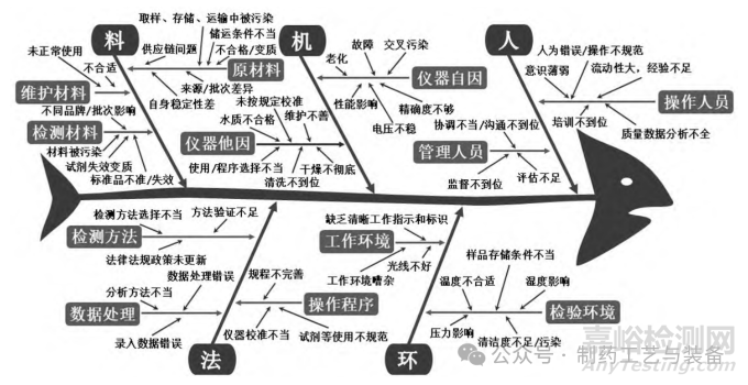 圖1 中小制藥企業(yè)產(chǎn)品檢驗(yàn)常見(jiàn)異常原因魚(yú)骨圖