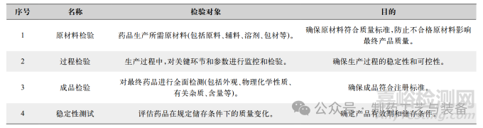 制藥企業(yè)的產(chǎn)品檢驗(yàn)和質(zhì)量管理是確保藥品安全、有效和高質(zhì)量的重要環(huán)節(jié)。產(chǎn)品檢驗(yàn)是指在藥品的生產(chǎn)全過(guò)程進(jìn)行的一系列檢測(cè)和評(píng)估,以確保其符合預(yù)定的質(zhì)量標(biāo)準(zhǔn),產(chǎn)品檢驗(yàn)主要方面如表1 所示。