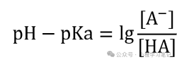 其中:pH是溶液的pH值。pKa是弱酸的解離常數(shù)的負(fù)對(duì)數(shù)。[A-]是弱酸的共軛堿的濃度。[HA]是弱酸的濃度。