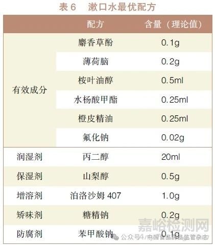 2.2 漱口水的配方優(yōu)化
