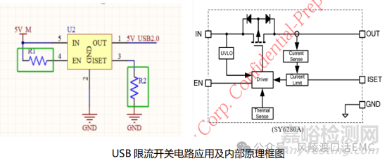 為驗(yàn)證USB設(shè)備電源出現(xiàn)跌落的具體原因,嘗試將USB限流開(kāi)關(guān)進(jìn)行短路后,對(duì)USB端子進(jìn)行靜電放電測(cè)試,USB設(shè)備掉線的問(wèn)題消失,反復(fù)驗(yàn)證確認(rèn)與USB限流開(kāi)關(guān)相關(guān)。