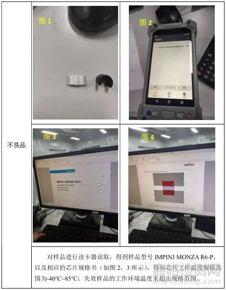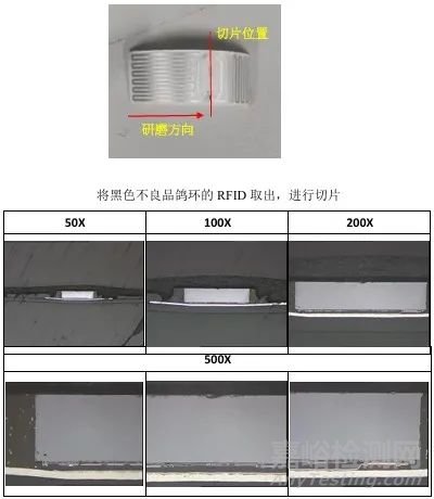 據(jù)客戶反映,其鴿環(huán)產(chǎn)品在-20℃下靈敏度降低,影響讀取?,F(xiàn)送1PCS不良品和5PCS其他批次的正常樣品進(jìn)行失效分析,以期找出失效原因。