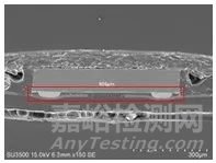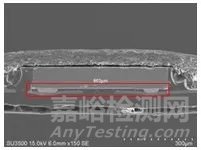 在一個(gè)切片觀察范圍內(nèi)(放大5000倍),2#紅色鴿環(huán)導(dǎo)電粒子實(shí)際的有效接觸區(qū)域如上圖所示,接觸(導(dǎo)通)長(zhǎng)度約為40μm。