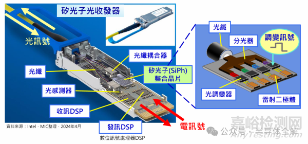 與電子集成將晶體管?電容器和電阻器等電子器件集成類似,光子集成(Photonic integrated circuit, PIC)是將各種光子器件集成在一起,如:電光調(diào)制器? 激光器? 光放大器? 光電探測器和光復(fù)用/解復(fù)用器等?