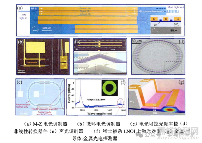 在LNOI上制備的集成聲光移頻器, 其移頻效率髙于氮化鋁薄膜上的聲光移頻器?激光器和放大器在稀土摻雜的LNOI上已經(jīng)取得了重大進(jìn)展?