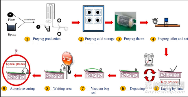 圖2 復(fù)合材料試驗(yàn)件制造工藝流程