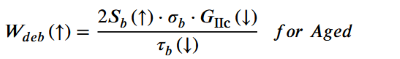 正如前文所述,復(fù)合材料在高速?zèng)_擊下的能量耗散主要是纖維向能量斷裂,而纖維向斷裂能量的耗散主要有兩種機(jī)制:纖維/基質(zhì)界面的脫粘(對(duì)應(yīng)脫粘部分做功,Wdeb)和脫粘后纖維拉出(對(duì)應(yīng)于纖維拉出部分做工,Wpo)。