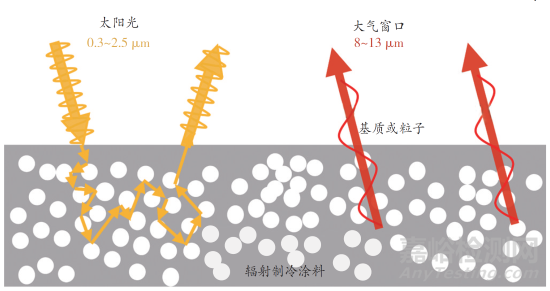 圖1 單涂層輻射制冷涂料的制冷原理示意圖