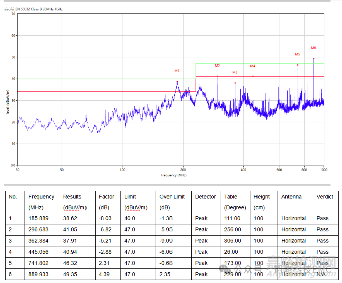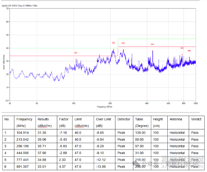 下圖為某計算器產(chǎn)品EMI摸底測試圖片,該產(chǎn)品有一個HDMI口外接一臺顯示器進行測試得出來的數(shù)據(jù)如下圖: