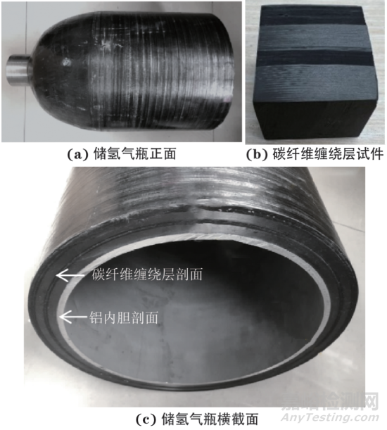 圖1 儲氫氣瓶實(shí)物與碳纖維纏繞層試件