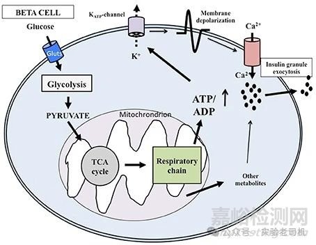 葡萄糖代謝觸發(fā):葡萄糖通過GLUT2轉(zhuǎn)運體進入細胞,經(jīng)糖酵解和線粒體氧化磷酸化生成ATP。