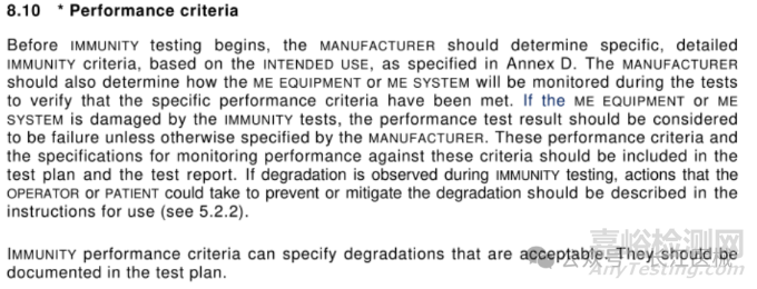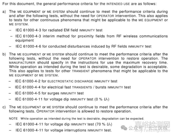 不同于IEC 60601-1-2中只關注設備的基本性能,IEC TR 60601-4-2標準對于設備的performance,也就是性能/功能作出了要求(僅針對抗擾度測試)。這彌補了IEC 60601-1-2中未提到的部分,所以FDA在后續(xù)可能會著重關注這點。