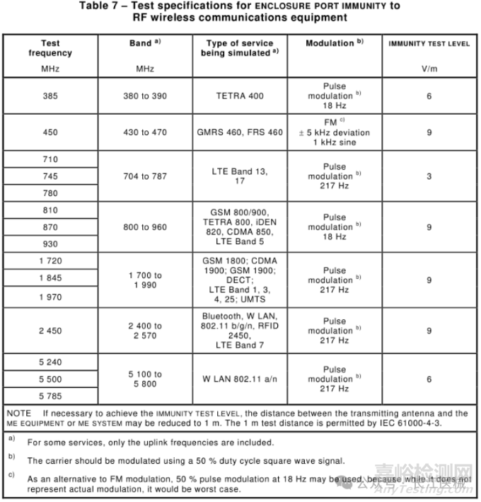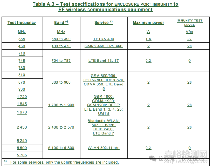 大型永久性安裝ME設備或ME系統(tǒng):頻率,功率,射頻測試源的調(diào)制和測試距離