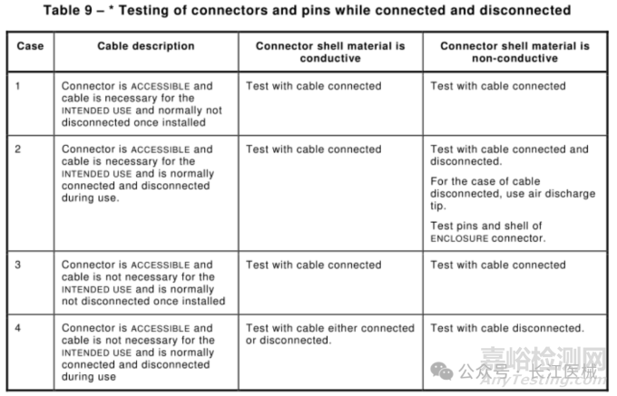 帶線和不帶線均測試。 不帶線測試時,進行空氣放電。 測試外殼連接器的pin和外蓋 |