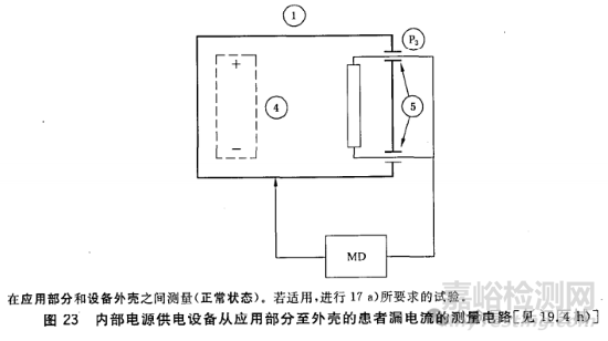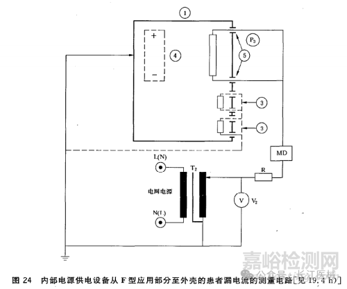 患者漏電流:如圖(摘自GB 9706.1-2007),測試應(yīng)用部分到外殼之間的漏電流