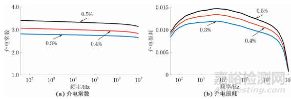 圖 4 不同 PI 納米纖維質(zhì)量分?jǐn)?shù)氣凝膠的介電常數(shù)和介電損耗