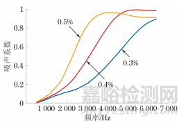 (3)PI納米纖維質(zhì)量分?jǐn)?shù)0.3%氣凝膠的介電常數(shù)在1MHz處為2.65,低于PI固體樹脂,當(dāng)PI納米纖維質(zhì)量分?jǐn)?shù)在0.4%,0.5%時(shí)在4000~6400Hz頻段下的平均吸聲系數(shù)可達(dá)0.86。