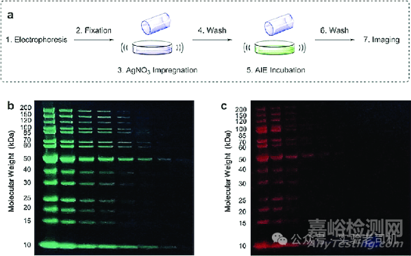 雖然銀染法的靈敏度遠(yuǎn)高于考馬斯亮藍(lán)染色,但其操作步驟較為復(fù)雜,且甲醛的使用讓凝膠中蛋白化學(xué)交聯(lián),導(dǎo)致質(zhì)譜不兼容;線性范圍窄,不太適合量化;核酸、脂類、糖脂類化合物常會(huì)對(duì)銀染染色的結(jié)果進(jìn)行干擾,導(dǎo)致實(shí)驗(yàn)重復(fù)率低。