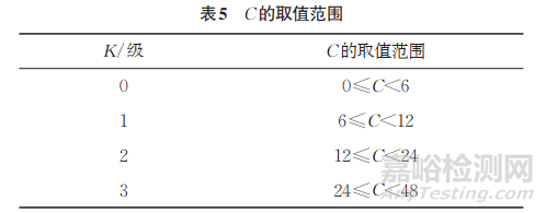 根據(jù)式(4)~(6),可知當(dāng)K為0,1,2,3級(jí)時(shí),C的取值范圍如表5所示。