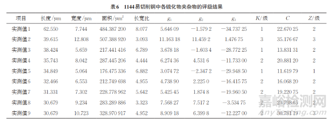 視場(chǎng)中各夾雜物的K和Z級(jí)別確定后,對(duì)單視場(chǎng)中同一級(jí)別硫化物夾雜物的面積進(jìn)行相加,加和面積最大的夾雜物級(jí)別就是該視場(chǎng)中硫化物夾雜物的級(jí)別。當(dāng)確定試樣檢測(cè)面內(nèi)全部視場(chǎng)的夾雜物級(jí)別后,以占優(yōu)勢(shì)視場(chǎng)數(shù)目的夾雜物級(jí)別來確定試樣硫化物夾雜物的級(jí)別。在不同級(jí)別視場(chǎng)數(shù)相等的情況下,如列值相等,根據(jù)最高行值劃分級(jí)別;如行值相等,根據(jù)最高列值劃分級(jí)別。長(zhǎng)度大于710μm的夾雜物稱為超大夾雜物。
