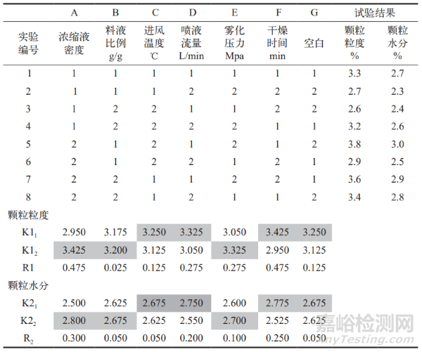 表 2 一步制粒正交試驗(yàn)結(jié)果
