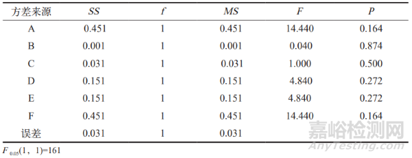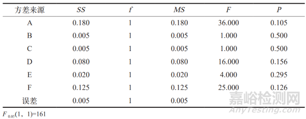 經(jīng)直觀方差分析,實(shí)驗(yàn)結(jié)果表明顆粒粒度、顆粒水分均在標(biāo)準(zhǔn)要求范圍內(nèi)。顆粒粒度受因素 A 和 F 的影響最大,影響順序?yàn)?A 和 F > D 和 E > C> B。顆粒水分受因素 A 的影響最為顯著,影響順序?yàn)?A > F > D > B 和C > E。綜合考量,最佳的一步制粒工藝為 A2B2C1D1E2F1。